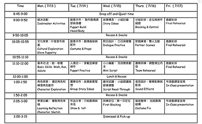 Teacher: Ms.Jasmine 這是一個結合 戲劇表達、創作思考與舞台體驗 的夏令營。孩子將從親手製作戲偶開始,學習角色設定、故事編排與基本舞台呈現,一步步打造屬於自己的小小劇場。 課程以 傳統偶戲藝術 為靈感,透過手作、口說練習與團隊合作,引導孩子發揮創意、練習語言表達,並在排練與演出中培養自信與專注力。 在營隊的最後,孩子們將進行課堂內的小型成果分享,展現自己完成的戲偶與演出片段,體驗從製作、創作到呈現的完整流程。